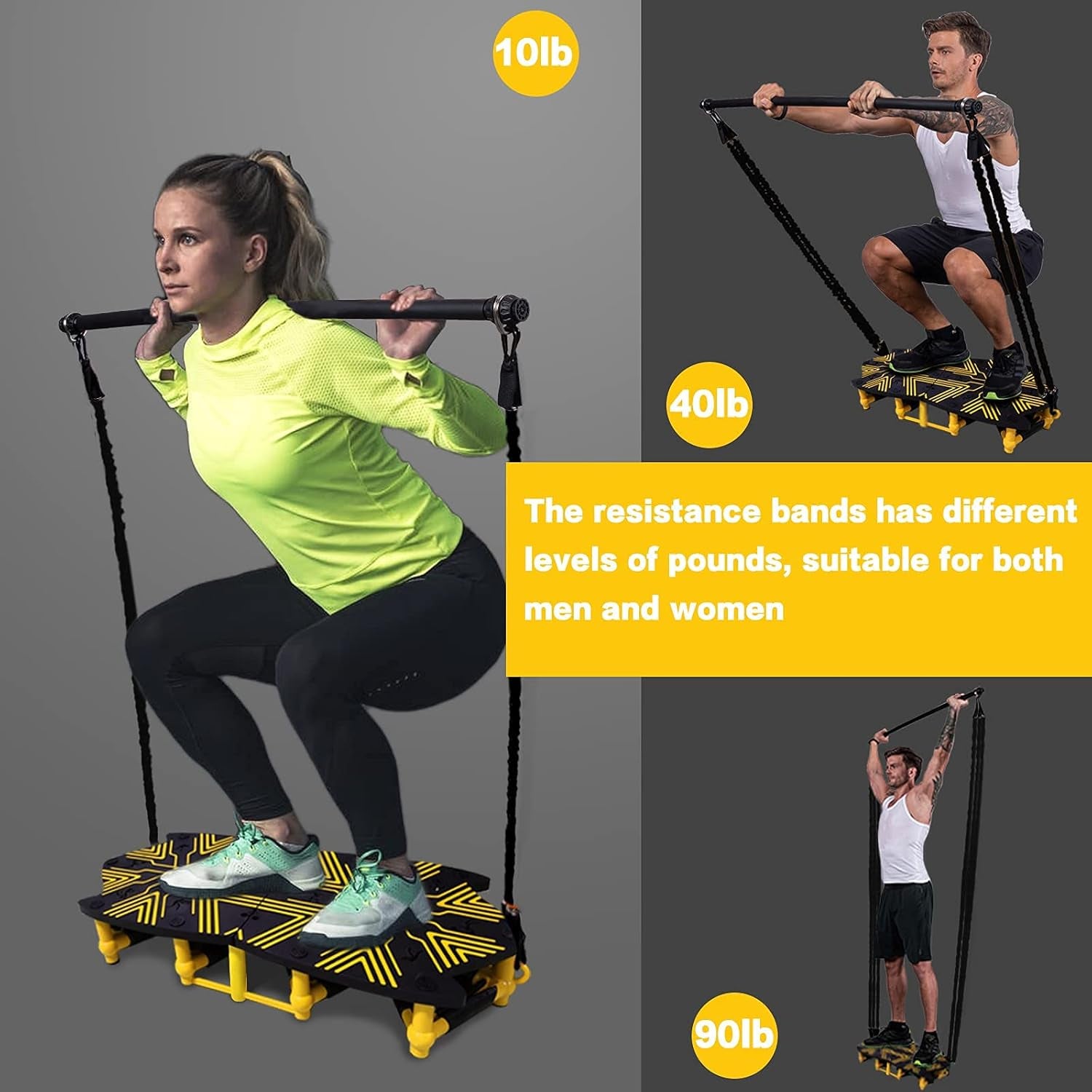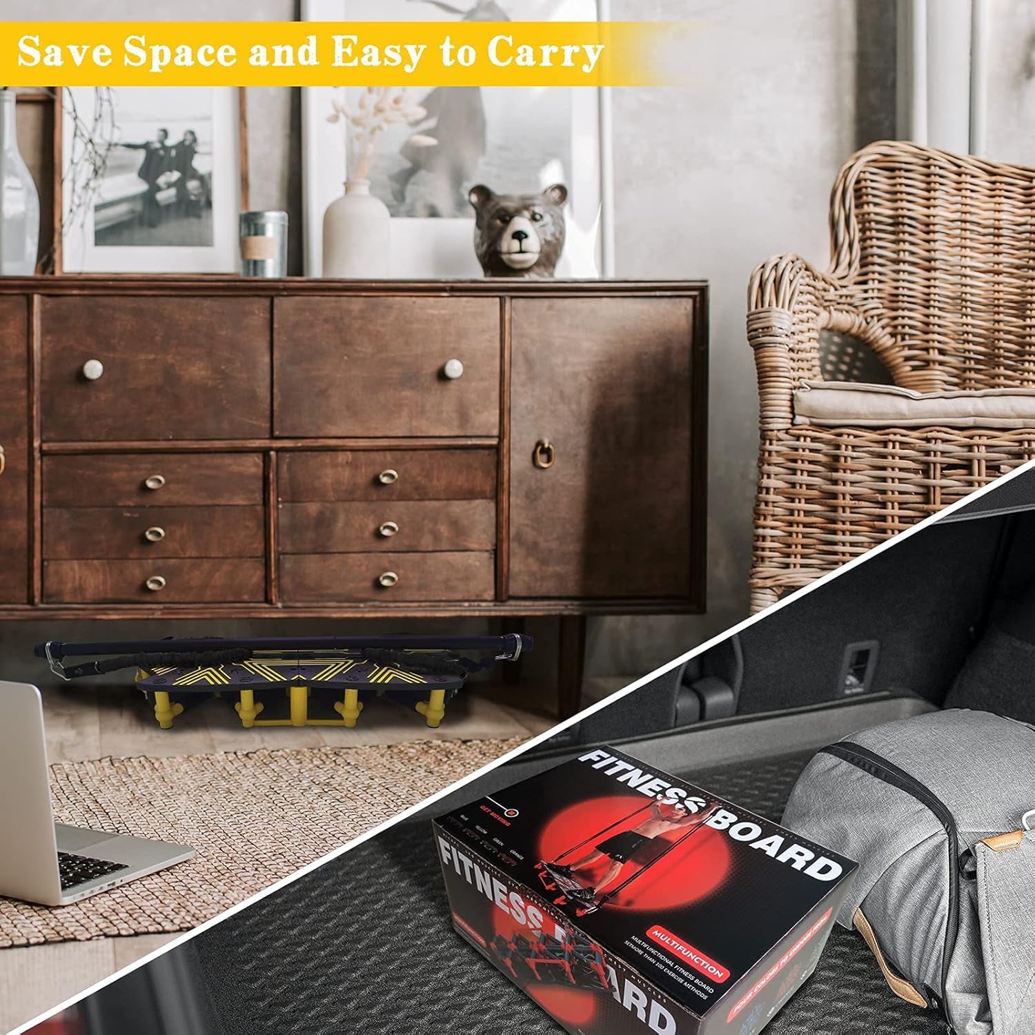 Portable Home Gym with 18 Exercise Accessories Including Fitness Board,Resistance Bands,Ab Roller Wheel and More,Full Body Workout System Suitable for Training Muscle and Burning Fat(Yellow)
