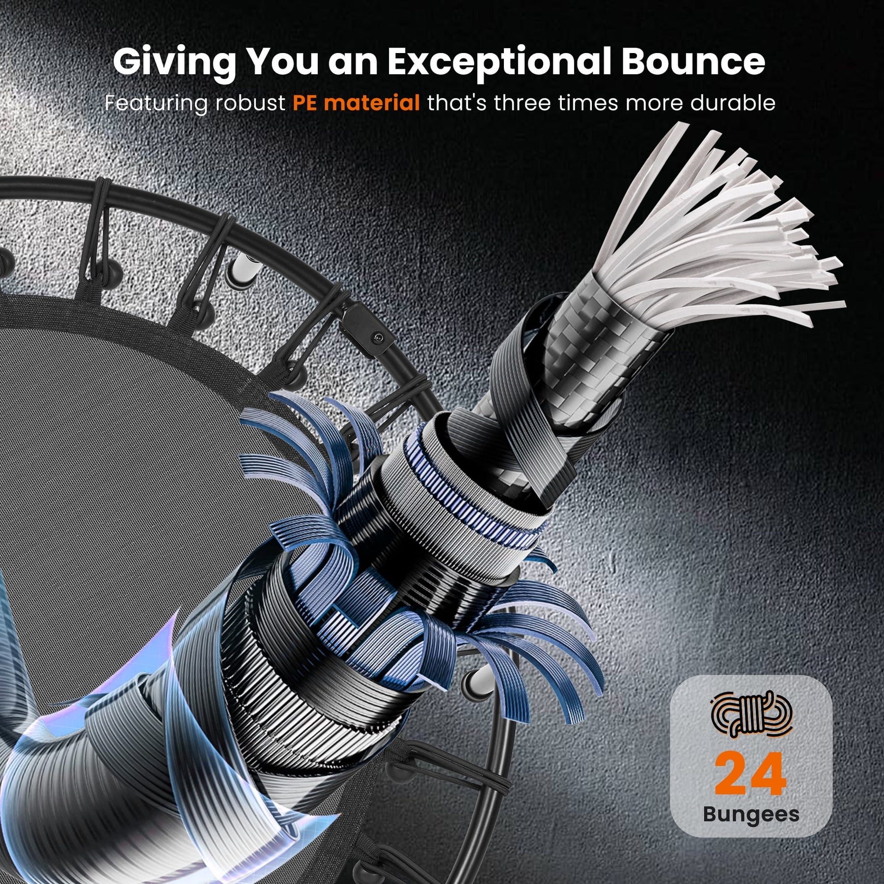 40" Fitness Trampoline Mini Trampoline with Bungees Adjustable Foam Handle Exercise Trampoline for Teenagers Adults Indoor/Garden Workout